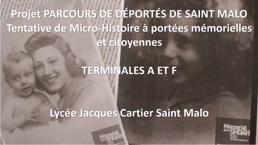 Dans la continuité des actions menées depuis une dizaine d’années au lycée Jacques Cartier (rencontres avec des survivants de la Shoah comme Ginette Kolinka, Yvette Levy, Larissa Cain ou Joseph Weismann), deux classes de terminale en 2022-2023 ont réalisé un site internet pour relater l'histoire des Juifs et des Résistants, déportés et jamais revenus des camps.