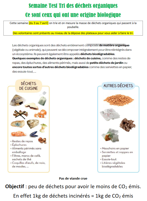 Peu de déchets pour avoir le moins de CO2 émis. En effet 1kg de déchets incinérés = 1kg de CO2 émis